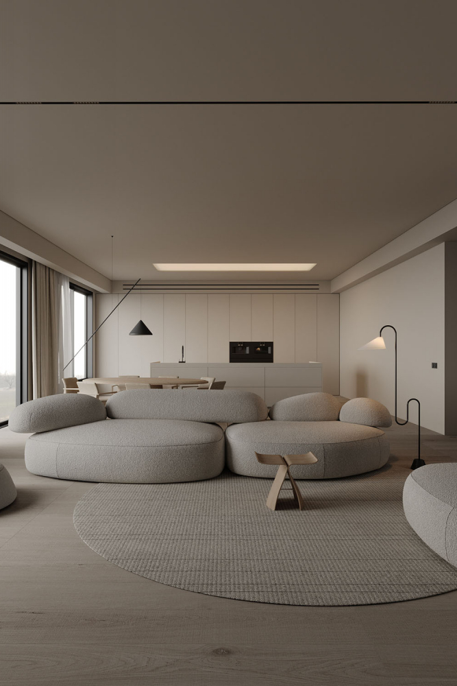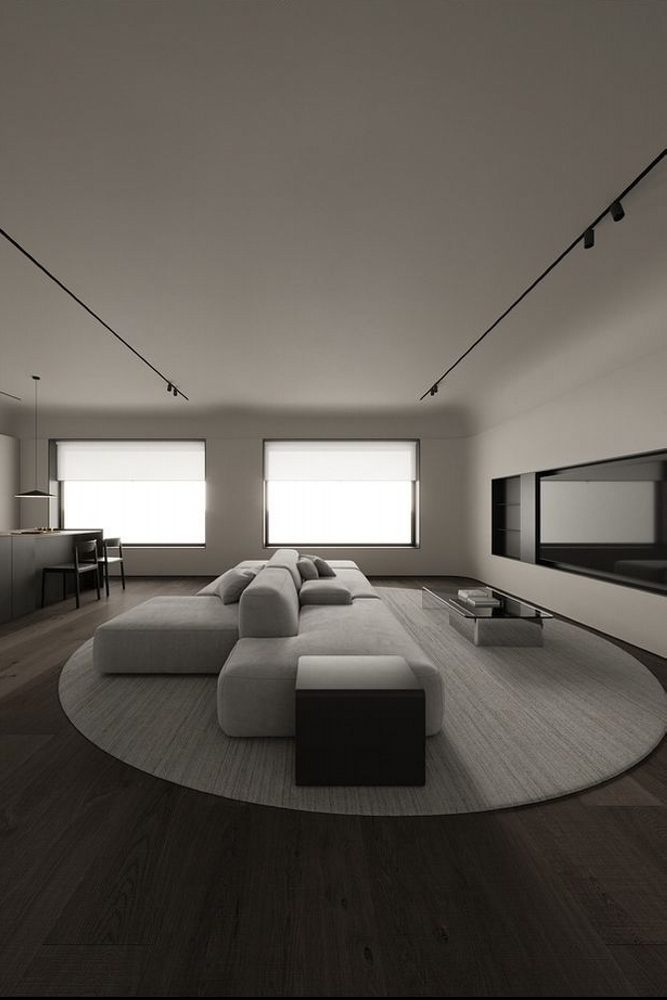 - Нейтральная цветовая палитра. Цветовая палитра обычно состоит из нейтральных и сдержанных оттенков, таких как белый, черный, серый и бежевый. Это позволяет создать спокойную и уравновешенную атмосферу в помещении, а также визуально расширить пространство.